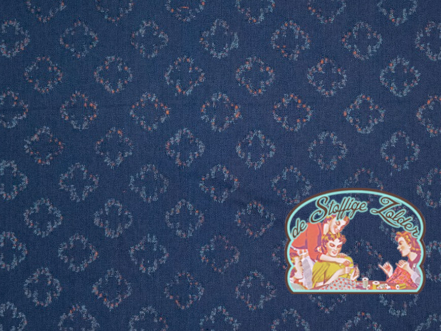Oranje donkere jeans gerecycleerd katoen, artikel 410124, kleur 51, Polytex Stoffen |