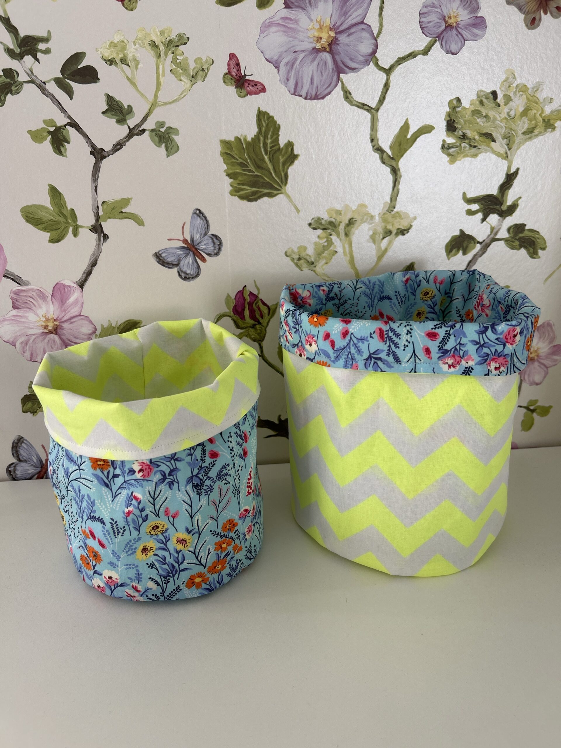 | Jullie maken samen 2 omkeerbare zakjes die kunnen dienen voor vele doeleinden: spulletjes op je bureau of nachttafel, om een bloempot in te plaatsen. Eentje voor elk of jullie gebruiken ze samen vb; elk in de badkamer voor jullie eigen spulletjes. Of in de living voor 2 plantjes… Jullie kunnen zelf kiezen welke bestemming ze uiteindelijk krijgen. Tussendoor verwennen we jullie met een lekker boterkoekje en een fruitsap. We maken er een gezellige moederdag workshop van! |